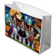 En lekfull Halloween-scen med en eländig liten valp som pissar ut en karvpumpare, omgiven av fallviber från scoky-roligt. Med kylig charm och hösten färg, är det perfektens beröring av humor för säsongen.