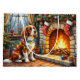 A cozy Christmas artwork featuring a cheerful Brittany Spaniel sitting beside a glowing fireplace adorned with stockings and twinkling Christmas lights. This festive holiday scene highlights the Brittany Spaniel’s joyful personality and loving nature, making it a perfect choice for dog lovers and warm seasonal decor. Bring the magic of Christmas and the spirit of companionship to your home with this heartwarming pet-inspired artwork.