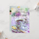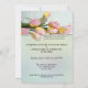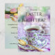 Brittisk födelsedagsfest eller påskbrunch eller High Tea-inbjudan med en färgglad te på framsidan och eleganta vår tulpaner på baksidan