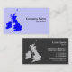 Ett affärskort med karta på de brittiska öarna. Företagsdetaljer på framsidan med namn och kontaktuppgifter på baksidan i ett tonalt stil som kontrasterar framsidan.