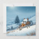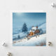 Lugn brittiskt vinterlandskap med snöiga böljande kullar och ett litet hus med får som betar på fältet.