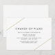 Modern geometrisk senareläggningskort för bröllop med två guld linjer, en på översta lämnat och en på andra sidan grund högerna tillsammans med titeln "Byte av plan" över en vit bakgrund. En minimalistisk utformning som fortfarande framträder som chic och snyggt. Dessa annonskort är ett underbart sätt att informera gästerna om att bröllop har skjutits upp.