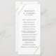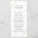 Modern geometrisk bröllopsprogram med två guld-linjer, en över den översta lämnat och en över grund-högerna över en vit bakgrund. Framsidan har dina ceremonier och baksidan har din bröllopsfest. En minimalistisk utformning som fortfarande framträder som chic och snyggt.