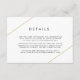 Kortet för modern geometrisk detaljinformation för bröllop med två guld linjer, ett över den översta lämnat och ett över grund höger över en vit bakgrund. En minimalistisk utformning som fortfarande framträder som chic och snyggt.