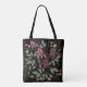 Broderad Lila Irises Black Background. Tygkasse
