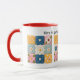 Unik och färgrik lapptäcke filt mönstrad mugg som quiltare och sömmerskor kommer älska. Tryckt med bilder av lapptäcke block och broderade blommor med realistiska detaljer. En texttext "När livet ger dig rester, gör en filt" kan redigeras till annan text i den enkla Zazzle-redigeraren om så önskas. Anpassa den ytterligare med dina favorit stil, storlek och färgval.