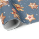 Cute pepparkaksgubbe, gingerbrödhus och snöflingor-cookie på stjärnbakgrunden.