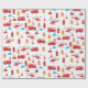 Ett sött rödbrand lastbil, mönster, inklusive illustrationer av lastbilar, brandhelikopter, brandbrandsläckare, brandslang, brandslang, akut- och trafikkon. En bra utformning för alla som kärlek akut fordon, brandmotorer, brandkårscener, brandkårer osv.