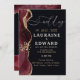 Utformning av visitkort för bröllopsinbjudan mörk svart bakgrund med burgudröd agate modern bröllop-design minimalistisk modern kortsnyggt och trendig svart blommigt