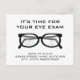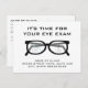 Påminn komen om att de ska genomgå en årlig öga-undersökning med detta roligtarna möte påminnelsevykort med ett par brutna öga-glasögon med ett öga-diagram som reflekterar linserna. Anpassa genom att lägga till namn på kliniken i öga. Perfekt för optometrister och oftalmologer.