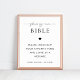 Uppmuntra dina gäster att lämna böner till det nya herr & fru med denna moderna, eleganta bibel-gästbokaffisch, med modernt skrivstil, svart hjärta och din anpassade text. Lägg enkelt till dina egna detaljer genom att klicka på "personifiera"-alternativet.