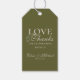 Visa din tacksamhet med denna presenttagg i olivgrönt med blommotiv, designad med mjuka botaniska accenter och en ren, modern layout. Med eleganta jordinspirerade blommor och dämpad olivgrön typografi, lägger denna tagg en charmig touch till presentpåsar, lådor eller minnessaker. En vacker detalj för par som omfamnar en naturinspirerad, minimalistisk bröllopsestetik.