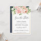 Bröllakskort med rosafärgade blommor att spara dat inbjudningar