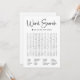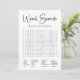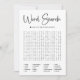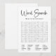 Förhöj din bröllaksfest med vårt Ord sökningskort för bröllapsfest, designat i en chic minimalistisk stil med elegant svart och vit skrift. Denna moderna och roliga ordsökning är det perfekta tillskottet till din fest, där gästerna engageras i en trevlig aktivitet när de hyllar bruden!