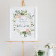 Bröllaksvälkomstskylt i rosa och guld med grönska poster