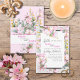 Gorgous Fleur de lis och cherry blommars bröllopsinbjudan! Du kan enkelt uppdatera med dina specifikationer, välja önskade pappra alternativ och utskriftsalternativ och snart få ett vackert tillägg till din pappra svit för bröllop.