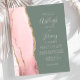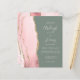 Den lämnat kant i eleganten med en modern bröllopsinbjudan har en rosa vattenfärgsagat gräns som trimmas med faux guld glitter. Anpassadet kombinerar blekens handskrift, mönstertext och kursivt typsnitt på en djup grönt. Den omvända sidan har en passande och guld agate-design.