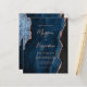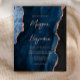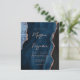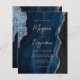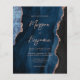 Den här inbjudan från elegant bröllop innehåller en bakgrundsbild av marinblått vattenfärgat agat som trimmas med faux ro guld glitter. Anpassadet kombinerar ro rosa med modern handskrift, tryckplåt och kursivt typsnitt. Den omvända sidan har en samordnande marinblått och ro guld-agatdesign.