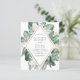 Budgeterade tropiska Magnolia Flowers med Blommigt Greenery Handflatan och Faux Gold Foil Geometric Gräns Vår eller Sommarbröllop - innehåller vackra och elegant manustypografi med moderna tropiska botaniska blommor och grönenergi för den speciella Bröllopsdagen firande.