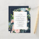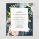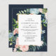 Budgeterad inbjudan till bröllopsbjudande för Rustic Watercolor Navy Guld Blommigt.
