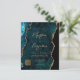 Den här inbjudan från elegant bröllop innehåller en bakgrundsbild av färgblått vattenfärgat färgagat trimmat med faux guld glitter. Anpassadet kombinerar modern handskrift, tryckplåt och kursivt typsnitt med guld-färgad. Behöver du mer information? Anpassa enkelt QR-koden så att gäster kan dirigeras till webbplatsen för bröllop. Den bakomliggande sidan har en samordnande teal och guld agate-utformning.