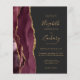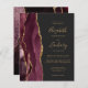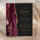 Den här elegantens lämnat kant har en modern bröllopsinbjudan med en burgundisk vattenfärgad agat gräns som trimmas med faux guld glitter. Med anpassadet kombineras handskrift, tryckplåt och kursivt typsnitt med guld färgad på en mörk grått-bakgrund. Den bakomliggande sidan har en matchande burgundi och guld-agate-design.