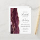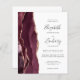 Den lämnat kant i eleganten med den moderna bröllopsinbjudan har en burgundröd vattenfärgad agat gräns som trimmas med faux ro guld glitter. Anpassadet kombinerar handskrift, tryckplåt och kursivt typsnitt i grått i kol mot vit bakgrund. Den omvända sidan ger plats för bröllop-information på en solid vit bakgrund, tillsammans med en QR-kodgäst som kan söka igenom webbplatsen och OSAN.