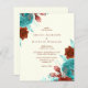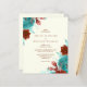 Den här romantiska bröllopsinbjudan till blommigt innehåller turkoshöjda blått och rost blommigt i två hörn. Parets namn visas i klassiskt rust-serif-teckensnitt, med den återstående texten i kursiv stil, på en elfenbensbakgrund.