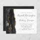 Den här elegantens lämnat kant har en modern bröllopsinbjudan med en svart vattenfärg som agerade i gräns som trimmas med faux guld glitter. Med anpassadet kombineras grått-handskrift, tryckplåt och kursivt typsnitt på vit bakgrund. Baksidan är solid off-black.