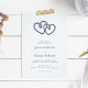 Romantiska bröllopsinbjudningar vid kustnära chic har en klassisk marinblått och vit palett i färg, med två intilliggande hjärtan som bildas med knutet nautiskt rep. Anpassa med din bröllopsdag under i en chic med serif- och sans serif-bokstäver. Perfekt för nautiska landningar, sommar- eller strandlandningar.