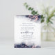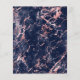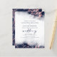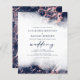 Den här inbjudan från elegant bröllop innehåller en marmor med blå vattenfärg gräns i form av marmor som är indränkt med faux-folie från ro och som gradvis tonas ner i den vita bakgrunden. Ord "bröllop" visas i handskriftsskript för mörk marin, med den återstående texten i versaler. Marble Blooch ro guld upprepas på kortets baksida.