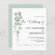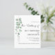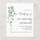 Ett ekonomiskt alternativ i BUDGET på en mindre storlek på 4,5 x 5,6 tum (110 lbs vikt), som är av samma tjocklek som ett vykort (är dock inte lämpligt för använda som vykort). OBSERVERA ATT DET FINNS EN inbjudan per lakan budgeterad QR-kod Eucalyptus Script-bröllopsinbjudan. Om du lägger till din QR-kod på din bröllop-webbplats på baksidan blir det här ett bekvämt alternativ för dina gäster till OSAN och du kan se alla detaljer utan att du behöver separata OSAS- och informationskort. Modern botanisk stil, med ett handskrivet skript för Bröllop av och resten av texten kan du lätt anpassa. En elegant gren av vattenfärgen eucalyptus lämnar springa nedåt på den lämnat sidan.