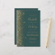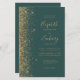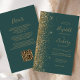 Den lämnat kant i eleganten är en modern bröllopsinbjudan från guld i glitter gräns. Anpassadet kombinerar handskrift, rityta och kursivt typsnitt med guld färgad mot en mörk grönt bakgrund. Den omvända sidan ger plats för bröllop-information på en solid mörk grönt bakgrund, tillsammans med en QR-kodgäst som kan söka på din webbplats och OSA, vilket sparar kostnaderna för utskrift och utskick av separat OSA kort.