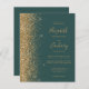 Den lämnat kant i eleganten är en modern bröllopsinbjudan från guld i glitter gräns. Anpassadet kombinerar handskrift, rityta och kursivt typsnitt med guld färgad mot en mörk grönt bakgrund. Den omvända sidan ger plats för bröllop-information på en solid mörk grönt bakgrund, tillsammans med en QR-kodgäst som kan söka på din webbplats och OSA, vilket sparar kostnaderna för utskrift och utskick av separat OSA kort.