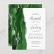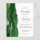 Den här elegantens lämnat kant har en modern bröllopsinbjudan med en grönt som är en som är en jägare och som är vattenfärgad i gräns som trimmas med faux silver glitter. Anpassadet kombinerar handskrift, tryckplåt och kursivt typsnitt i grått i kol mot vit bakgrund. Den omvända sidan har en matchande grönt och silver agate-design.