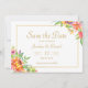 Modern, ljus och färsk tropisk blomma var bröllop spara datum med modern och manusfärgad typografi, guld ram och en fantastisk botanisk vattenfärgsgrej. Det går att ändra bakgrunden till färg under "anpassa ytterligare".Matchningsobjekt som finns i samlingen "Tropical Blommigt Bröllop".