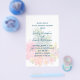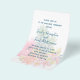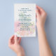 Budgetbröllopsinbjudan med tropisk bakgrundsdesign. Vit papper med mörk blått text som du vill anpassa i tre avsnitt. Ananas och exotiska, tropiska blommor dekorerar bakgrunden i grönt, rosa, orange och gult. Alla favoriter i tropikernorna finns med, till exempel plumeriablommor, hibiscus och paradisfåglar. Inbjudan kommer i tre storlekar. Överför designen till en papper uppgradering om du vill.