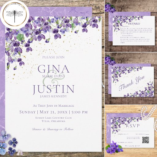 Rustic Purple Violets Gold Sparkle Wedding SuiteDesignad av Kathe Santillo