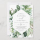 Den här inbjudan till bröllopsbröllopet för avslappnaden är perfekt för ett sommar- eller fallbröllop. Den moderna bohos-designen har löv för framväxande, sage och oliv grönt vattenfärger och botaniker med sprit av elegant vita blommor.
