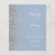 Den lämnat kant i eleganten är en modern bröllopsinbjudan från silver i glitter gräns. Anpassadet kombinerar vit handskrift, tryckplåt och kursivt typsnitt på en dammig blå bakgrund. Den omvända sidan har en matchande formgivning av silver och dammig blå.