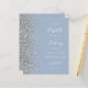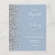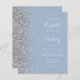 Den lämnat kant i eleganten är en modern bröllopsinbjudan från silver i glitter gräns. Anpassadet kombinerar vit handskrift, tryckplåt och kursivt typsnitt på en dammig blå bakgrund. Den omvända sidan har en matchande formgivning av silver och dammig blå.