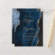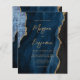 Den här inbjudan från elegant bröllop innehåller en bakgrundsbild av marinblått vattenfärgat agat som trimmas med faux guld glitter. Anpassadet kombinerar modern handskrift, tryckplåt och kursivt typsnitt med guld-färgad. Den omvända sidan har en samordnande marinblå och guld-agatdesign.