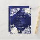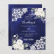 För en elegant och ett romantiskt bröllop. En marin blå, ojämn färgad med vit blommigt, ro och vit snöre. Anpassa och lägg till namn och information. 1 lakan = 1 inbjudan tryckt kant till kant.