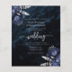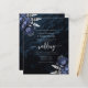Den här inbjudan från elegant bröllop innehåller marina blåa blommigtar som är utgivna med silver faux foil grey i två hörn, på en bakgrundsbild av marin blått vattenfärgsagat. Anpassadet silver grått-text kombinerar serif, italic och handskrift typsnitt. Den omvända sidan har en matchande marin blå och silver-blommigt och agate-design.