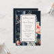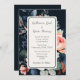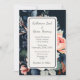 Det här är en bröllopsinbjudan till elegantens marinblått och blommigt med blommor i blått och rosa ros på en lätt och marinblå bakgrundsdesign. Det är perfekt för en romantisk bröllop firande.