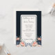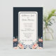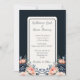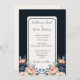 Det här är en bröllopsinbjudan till elegantens marinblått och blommigt med blommor i blått och rosa ros med lätt bakgrund. Det är perfekt för en romantisk bröllop firande.