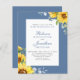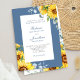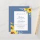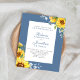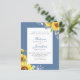 Bröllopsinbjudan till elegant pappra lakan har en snyggtens typografiska utformning med en fantastisk blommigt av solros och eukalyptus vattenfärg. En liten dammig blå färg används för en del av texten och bakgrunden. Det här biet på bröllop-kontoret är redot för dig att anpassa dig efter detaljerna på din speciella dag. En del av en ständigt växande samling, bläddra i uppsättningen Solros & Eucalyptus Blommigt Bröllop för matchande artiklar.