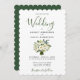 Modern Watercolor Blommigt Grönt och Vita bröllopsinbjudningskort - Scalloped Kant