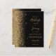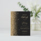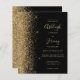 Den lämnat kant i eleganten är en modern bröllopsinbjudan från guld i glitter gräns. Anpassadet kombinerar handskrift, rityta och kursivt typsnitt med blek guld färgad mot svart bakgrund. Den omvända sidan har en matchande design för svart och guld.