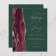 Spara kostnaden för att skriva ut och skicka separata OSA kort med den här eleganten, moderna bröllopsinbjudan för hela budgeten. Det lämnat kant har en burgundisk vattenfärgsagat gräns som trimmas med guld faux glitter. Anpassadet kombinerar handskrift, rityta och kursivt typsnitt med guld-färgad på en bakgrundsbild av grönten. På baksidan finns utrymme för information om bröllop på en solid grönt-bakgrundsbild, tillsammans med en QR-kodsgäst som kan söka på webbplatsen och OSAN.